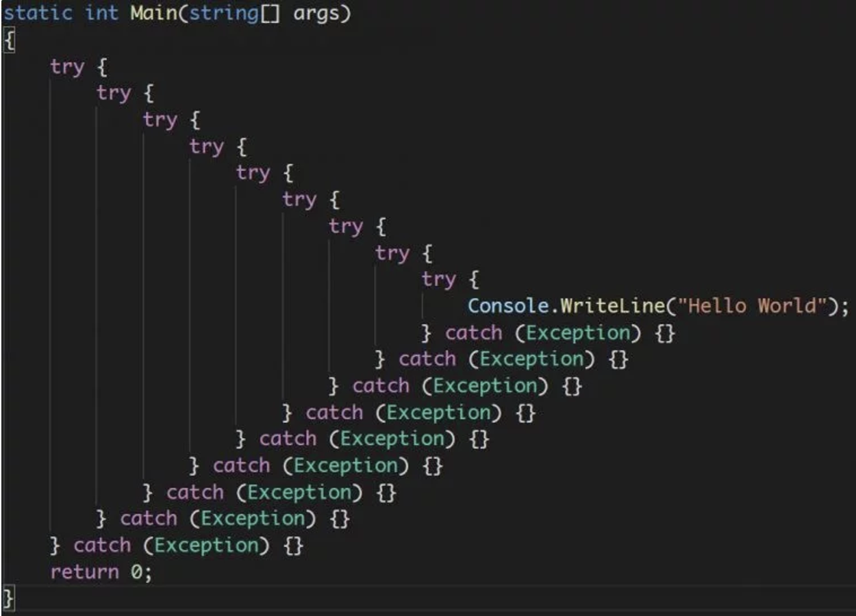 Exception을 상위 함수에서 처리하는 것을 남용하게 된다면 이렇게 된다.