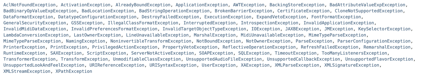 갯수를 보니 Exception에 대하여 모든 케이스를 머리속에 두는건 어렵다. 또한 이것은 JAVA가 정의한 Exception일뿐 언어, 도메인, 코드 구조별로 발생할 수 있는 Exception이 다르다는 것을 생각해보면 모든 Exception에 대해 파악하는 것은 사실상 불가능하다.